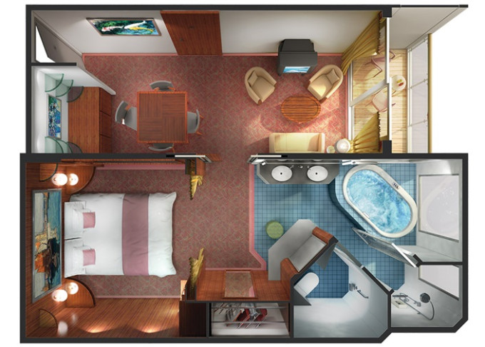 | SC - Forward-facing Deluxe Penthouse Suite 51 m² / balkón 10 m². Vírivka. 10. paluba - vpredu. Max 3 osoby. Výhody Suite. | 29 724 € 14 862 € za osobu | ||